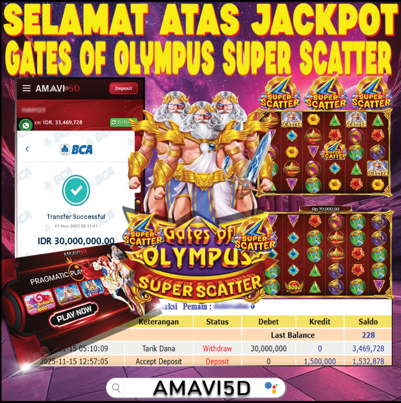 AMAVI5D JACKPOT SLO GATES OF OLYMPUS SUPER SCATTER Rp30.000.000,- LUNAS