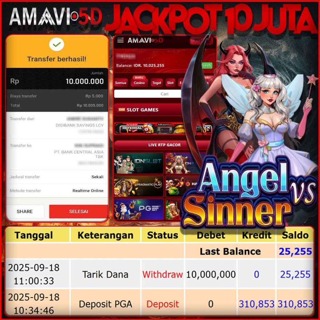 AMAVI5D JACKPOT SLOT ANGEL VS SINNER Rp.10.000.000,- LUNAS KAMIS, 18 SEPTEMBER 2025