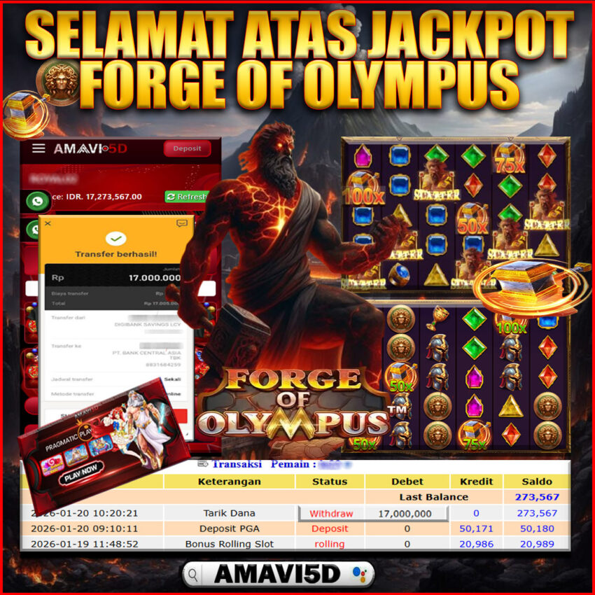 SLOT FORGE OF OLYMPUS kemenangan Sebesar Rp17,000.000, Setelah mengisi formulir withdraw dengan kurung waktu hanya 5 – 10 menit pihak amavi5d sudah melakukan transfer kepada pemilik User id dan dana sudah dapat di cairkan oleh pemenang. Bukti pembayaran yang kami berikan merupakan bukti pembayaran yang SAH / VALID yang langung di dapatkan melaui tanda transfer transaksi dari Bank yang di tuju. Kami mengucapakan banyak Terima Kasih Kepada pemenang karena sudah mempercayakan kami sebagai Bandar Tepercaya yang membayar semua kemenangan member hingga lunas. Masih ragu dengan amavi5d bos ? Di mana bandar togel online sekarang yang terpercaya seperti amavi5d? Bandar yang mengirimkan kemenangan member tanpa bertele – tele. Jadi…. tidak perlu khwatir pada situs amavi5d karena kemenangan anda berapapun akan dibayarakan hingga lunas kepada pemenang