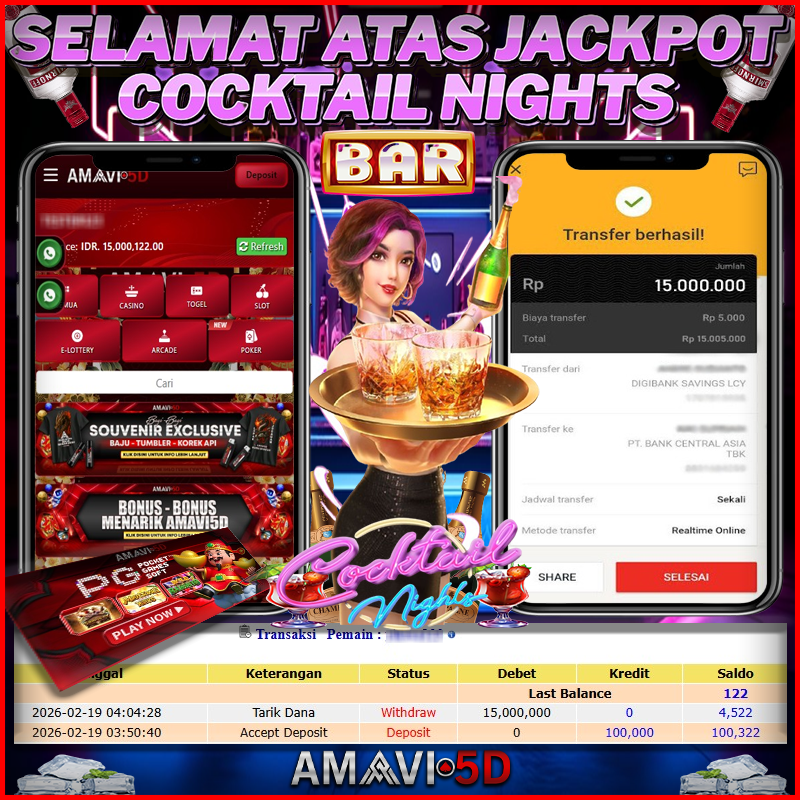 AMAVI5D JACKPOT SLOT COCKTAIL NIGHTS Rp15,000.000- LUNAS
