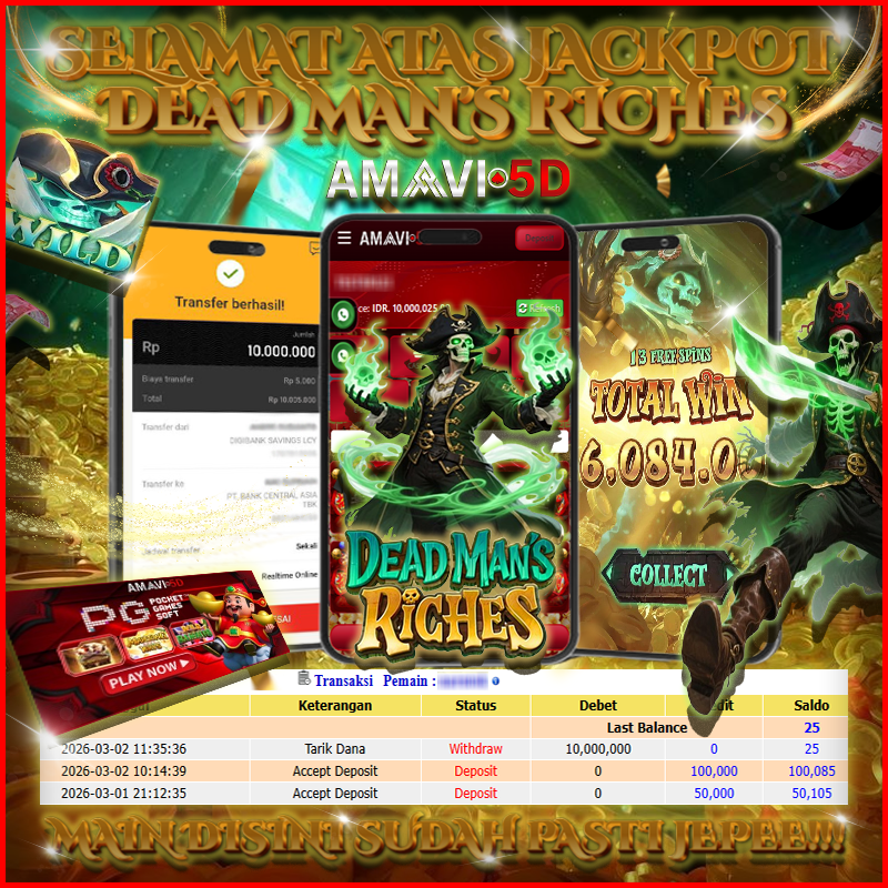 AMAVI5D JACKPOT SLOT DEAD MAN’S RICHES Rp10,000.000- LUNAS