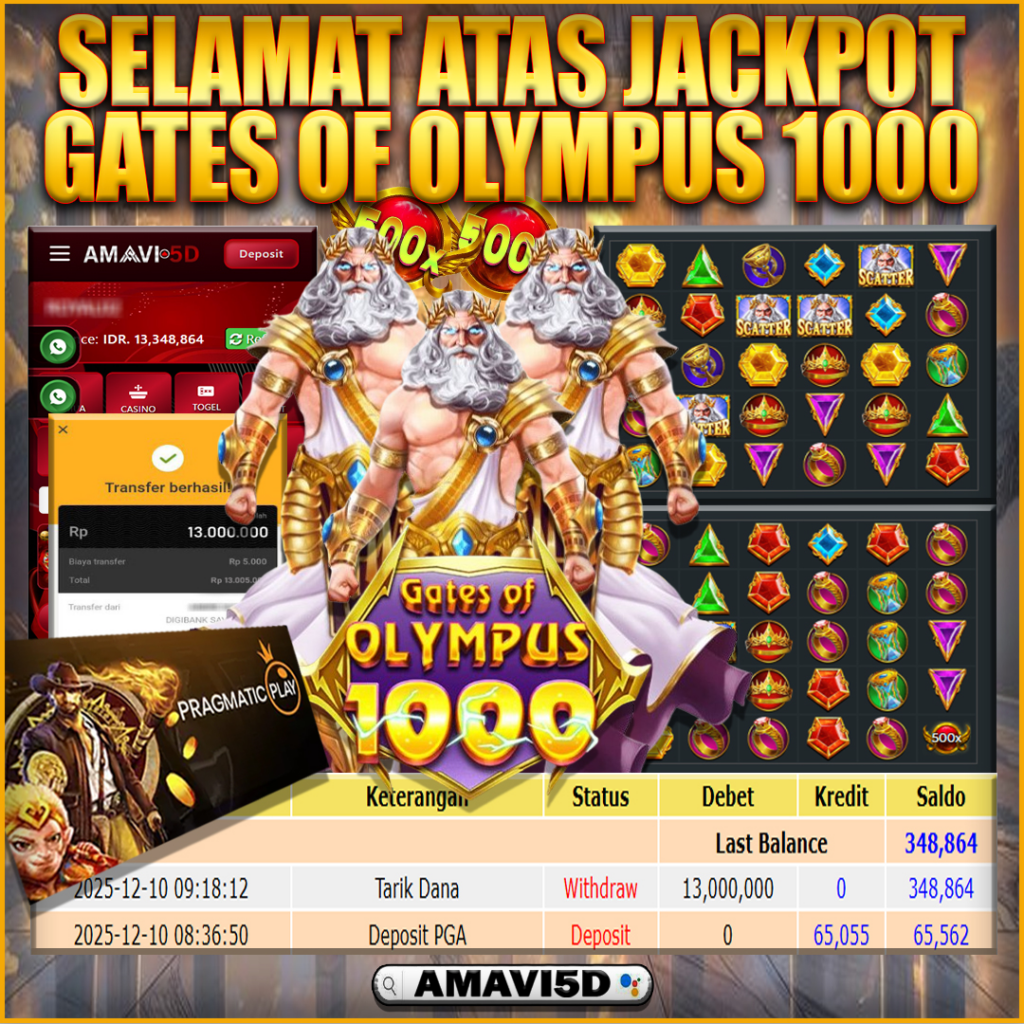 AMAVI5D JACKPOT SLOT GATES OF OLYMPUS 1000 Rp 13.000.000- LUNAS, RABU ,10 DESEMBER 2025 Selamat kepada User id :yuki****11 Telah berhasil mendapatkan kemenangan besar pada permainan