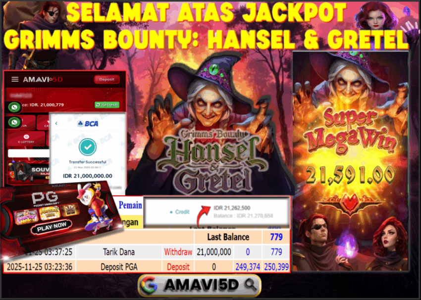 AMAVI5D SLOT GRIMMS BOUNTY: HANSEL & GRETEL Rp 21.000.000,– LUNAS,SELASA ,25 NOVEMBER 2025 Selamat kepada User id :AGU**KI11 Telah berhasil mendapatkan kemenangan besar pada permainan