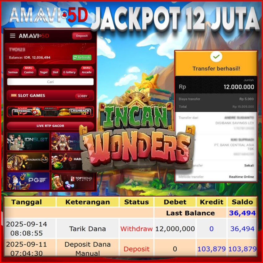 AMAVI5D JACKPOT SLOT ICAN WONDERS Rp.12.000.000,- LUNAS MINGGU, 14 SEPTEMBER 2025