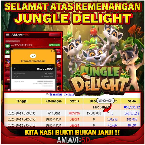 AMAVI5D JACKPOT SLOT JUNGLE DELIGHT Rp15.000.000,- LUNAS, SENIN 13 OKTOBER 2025