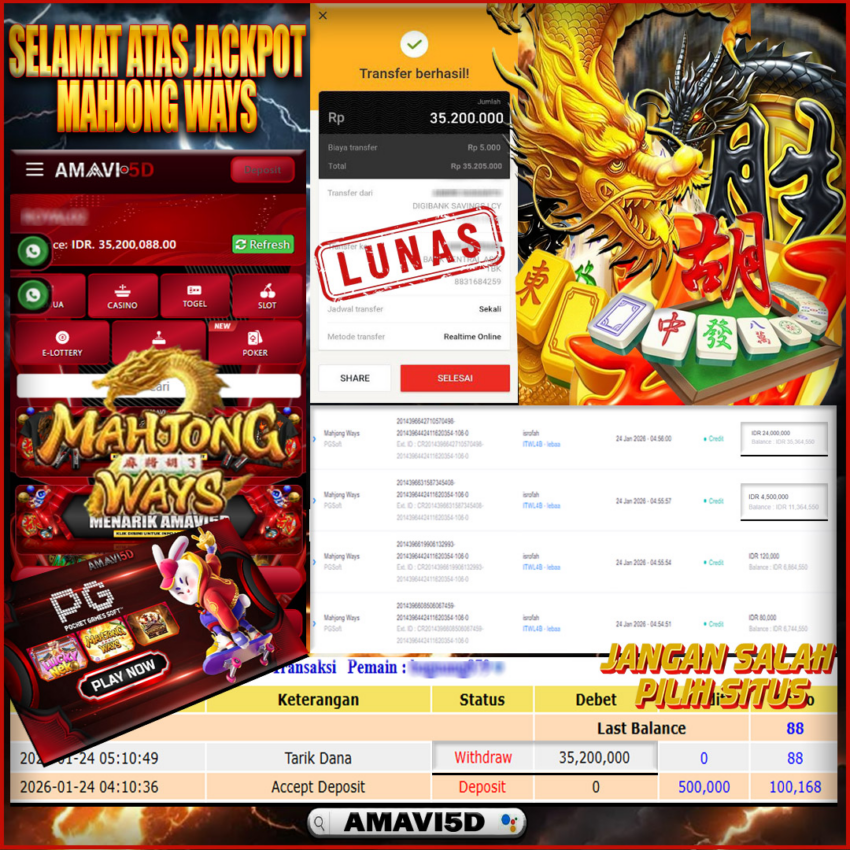 AMAVI5D JACKPOT SLOT MAHJONG WAYS Rp.35,200.000- LUNAS
