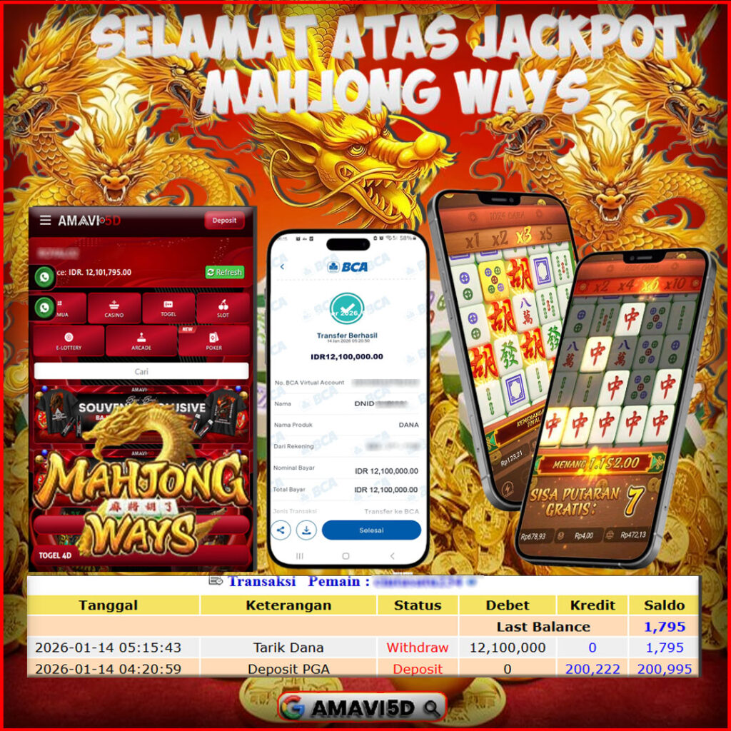 AMAVI5D JACKPOT SLOT MAHJONG WAYS Rp12,100.000- LUNAS