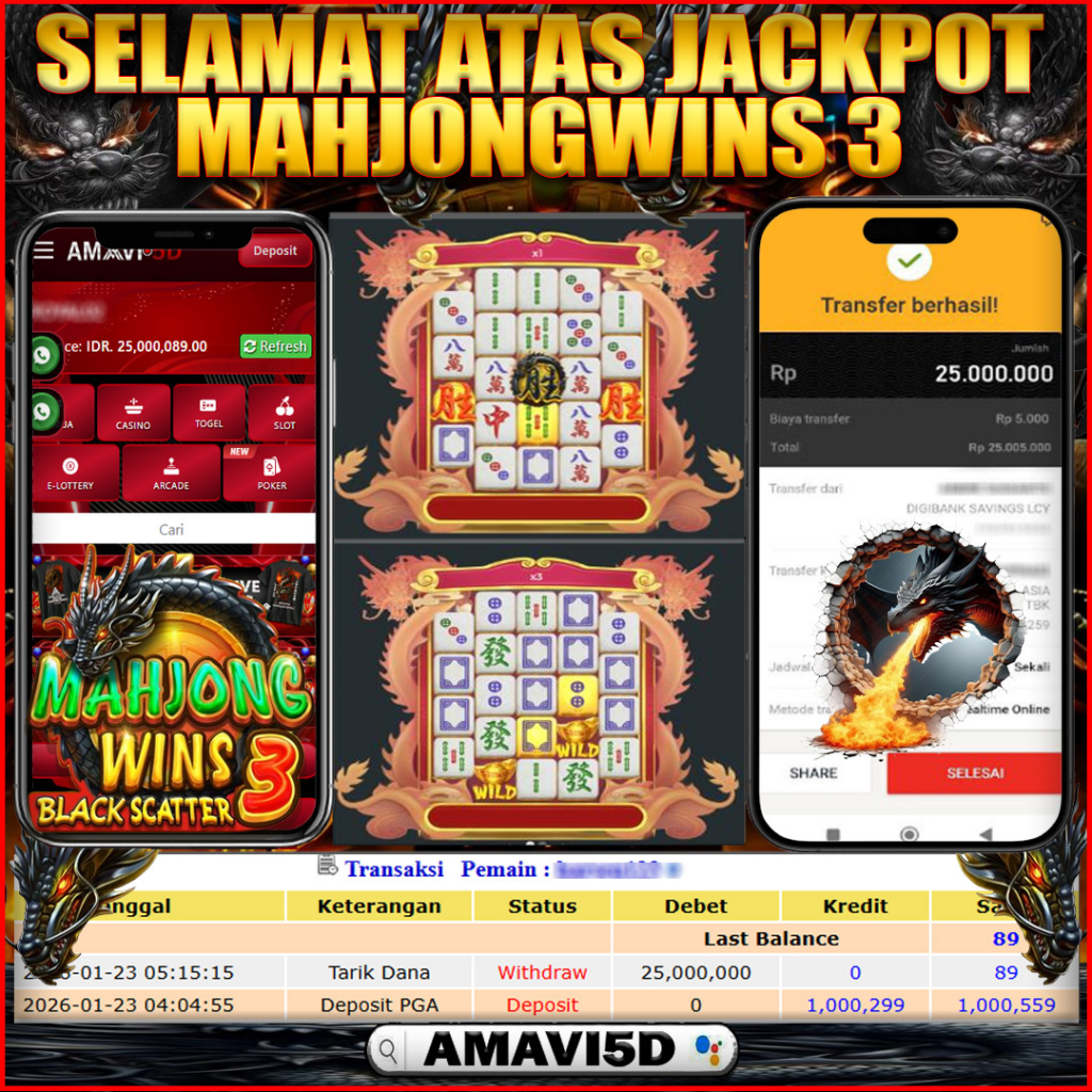 AMAVI5D JACKPOT SLOT MAHJONG WINS3 BLACK SCATTER Rp.25,000.000- LUNASD