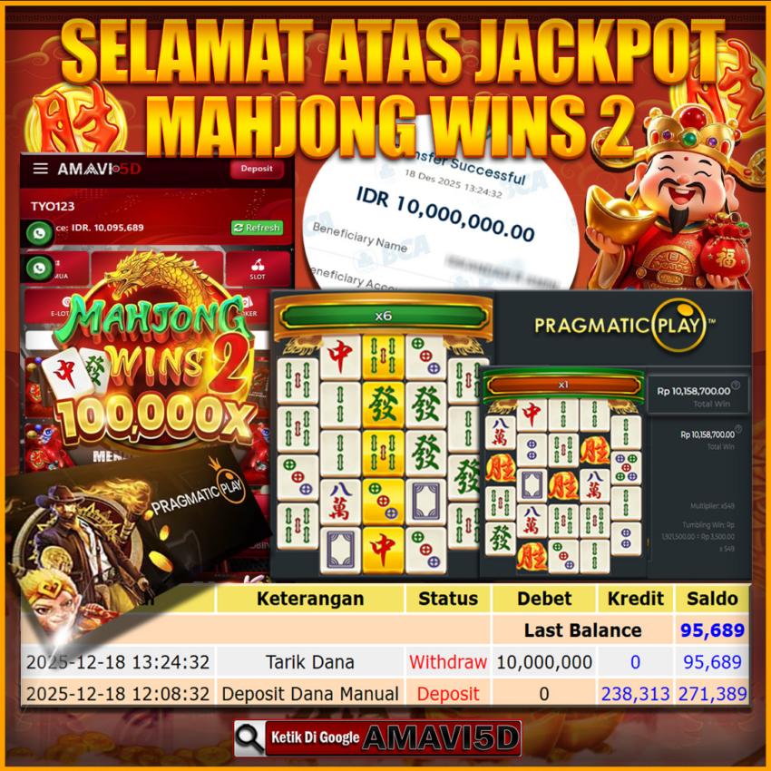 AMAVI5D JACKPOT SLOT MAHJONG WINS 2 Rp10,000.000- LUNAS