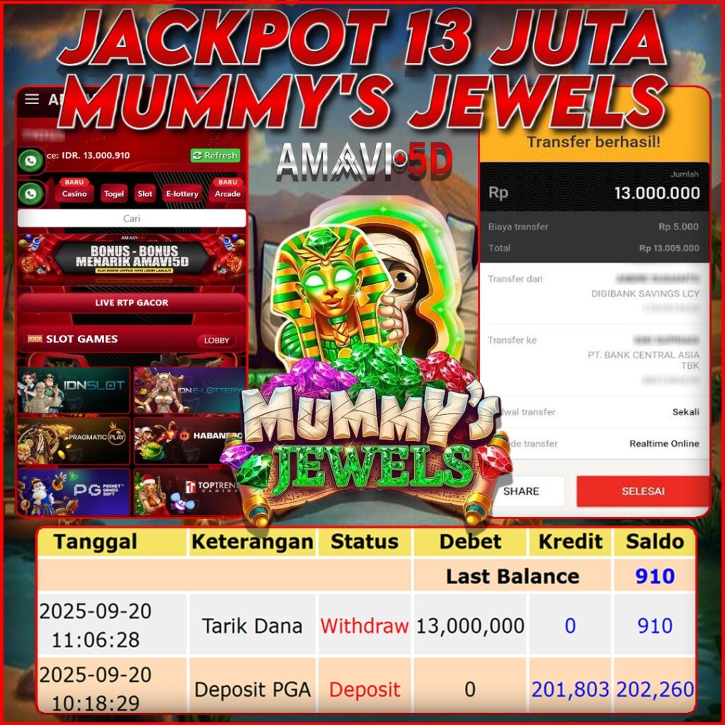 AMAVI5D JACKPOT SLOT MUMMY JEWELS Rp.13.000.000,- LUNAS SABTU, 20 SEPTEMBER 2025
