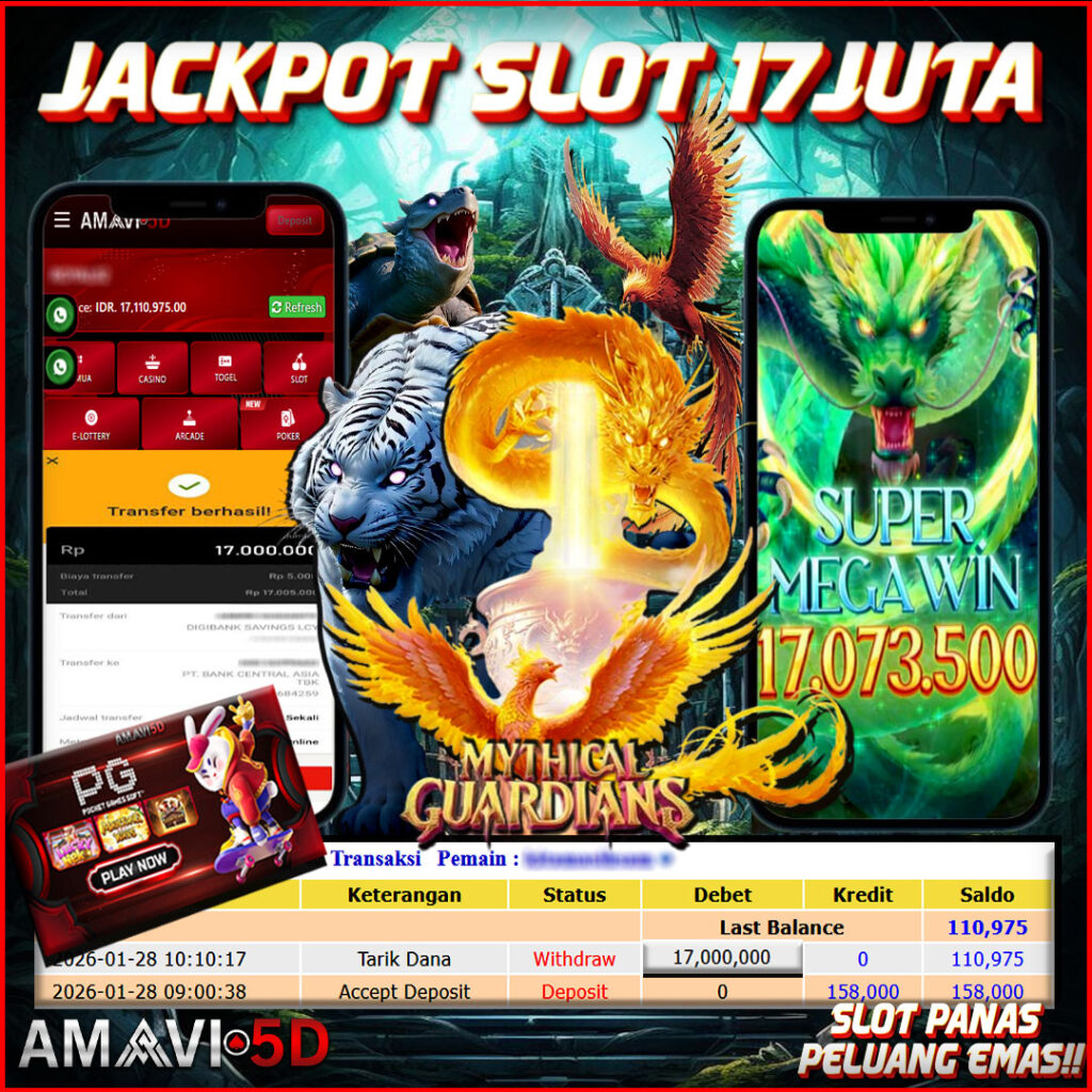 AMAVI5D JACKPOT SLOT MYHUCAL GUARDIANS Rp17,000.000 – RABU ,28 JANUARY 2026 Selamat kepada User id : AMATT***07 Telah berhasil mendapatkan kemenangan besar pada permainan
