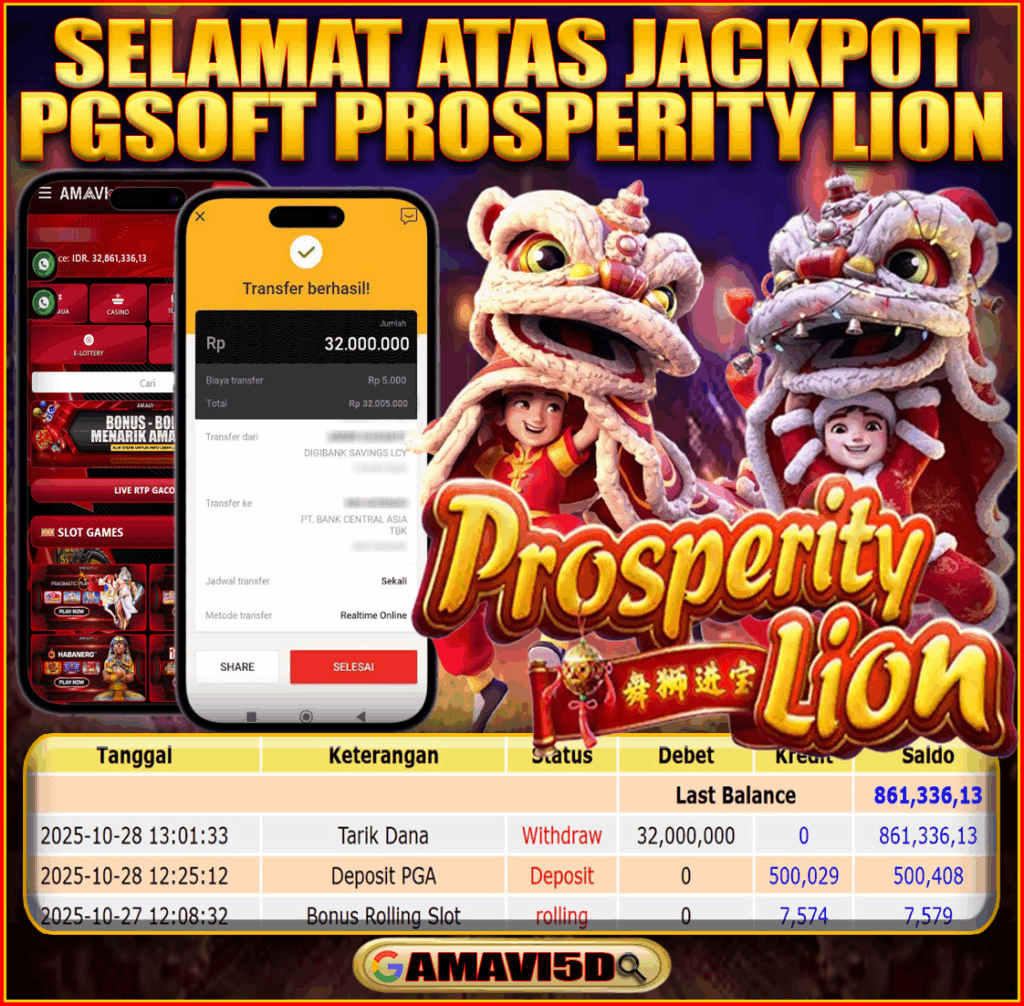 SLOT PROSPERITY LION kemenangan Sebesar Rp32.000.000, Setelah mengisi formulir withdraw dengan kurung waktu hanya 5 – 10 menit pihak amavi5d sudah melakukan transfer kepada pemilik User id dan dana sudah dapat di cairkan oleh pemenang. Bukti pembayaran yang kami berikan merupakan bukti pembayaran yang SAH / VALID yang langung di dapatkan melaui tanda transfer transaksi dari Bank yang di tuju. Kami mengucapakan banyak Terima Kasih Kepada pemenang karena sudah mempercayakan kami sebagai Bandar Tepercaya yang membayar semua kemenangan member hingga lunas. Masih ragu dengan amavi5d bos ? Di mana bandar togel online sekarang yang terpercaya seperti amavi5d? Bandar yang mengirimkan kemenangan member tanpa bertele – tele. Jadi…. tidak perlu khwatir pada situs amavi5d karena kemenangan anda berapapun akan dibayarakan hingga lunas kepada pemenang.