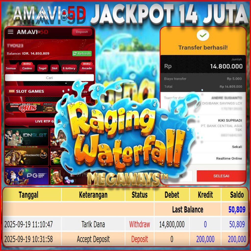 AMAVI5D JACKPOT SLOT RAGING WATERFALL Rp.14.000.000,- LUNAS,- LUNAS JUMAT, 19 SEPTEMBER 2025
