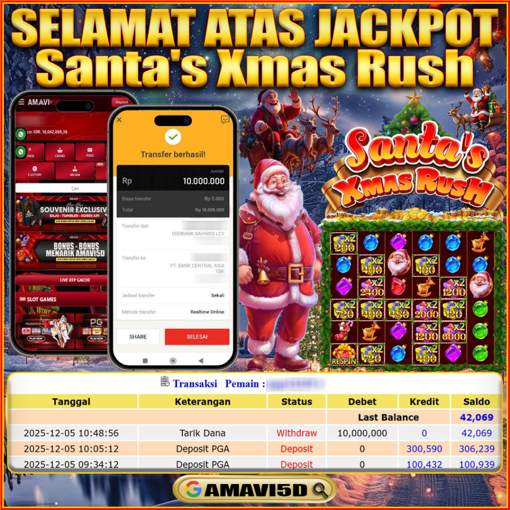 AMAVI5D JACKPOT SLOT SANTA’S XMAS RUSH Rp10.000.000- LUNAS