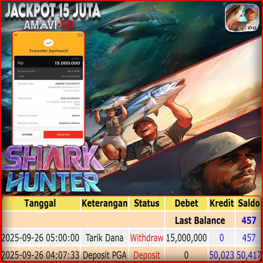 AMAVI5D JACKPOT SLOT SHARK HUNTER Rp15.000.000,- LUNAS, JUMAT, 26 SEPTEMBER 2025