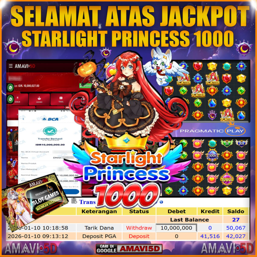 AMAVI5D JACKPOT SLOT STARLIGHT PRINCESS Rp10,000.000- SABTU ,10 JANUARY 2026 Selamat kepada User id : SERIJ***MNETelah berhasil mendapatkan kemenangan besar pada permainan