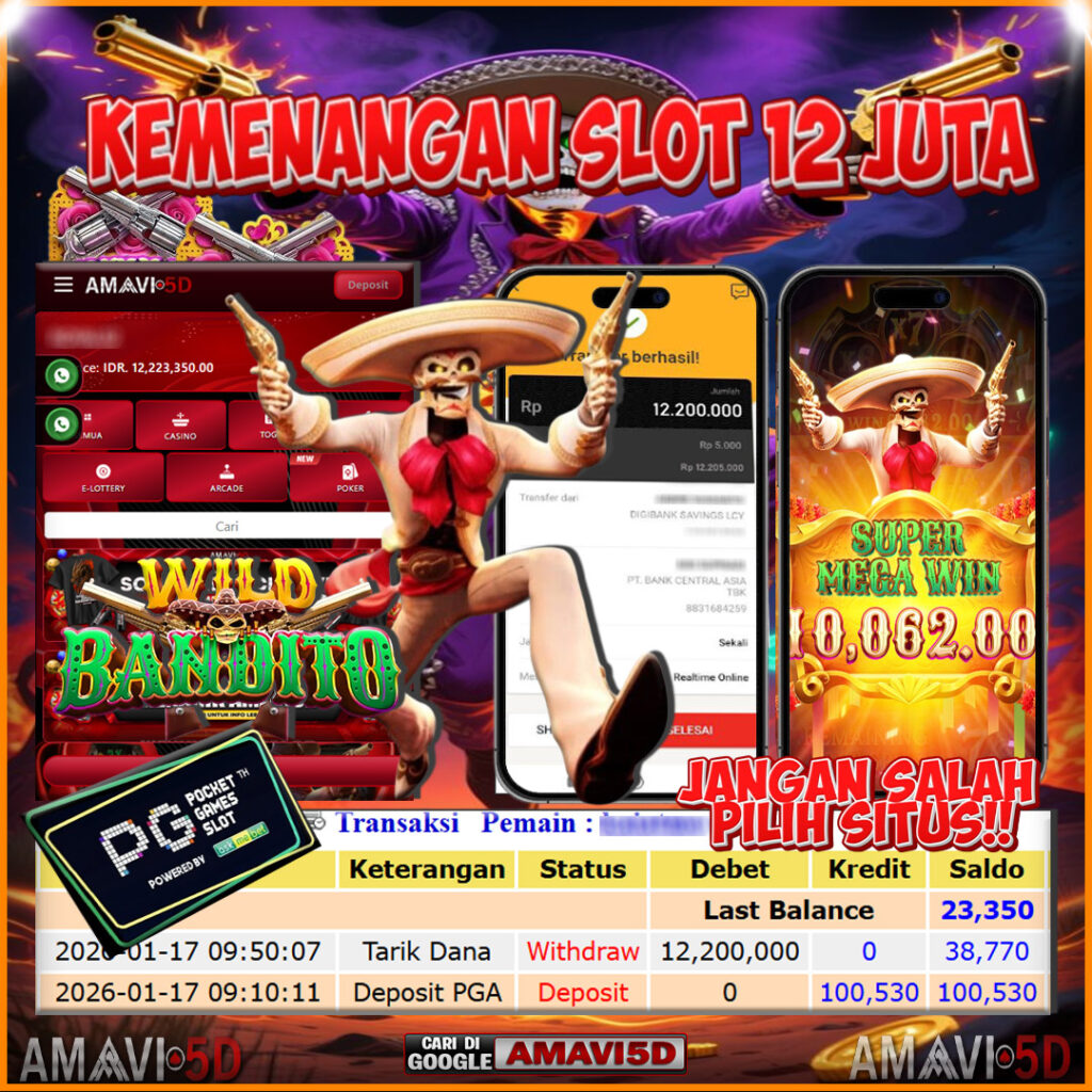 SLOT WILD BANDITO kemenangan Sebesar Rp12,200.000, Setelah mengisi formulir withdraw dengan kurung waktu hanya 5 – 10 menit pihak amavi5d sudah melakukan transfer kepada pemilik User id dan dana sudah dapat di cairkan oleh pemenang. Bukti pembayaran yang kami berikan merupakan bukti pembayaran yang SAH / VALID yang langung di dapatkan melaui tanda transfer transaksi dari Bank yang di tuju. Kami mengucapakan banyak Terima Kasih Kepada pemenang karena sudah mempercayakan kami sebagai Bandar Tepercaya yang membayar semua kemenangan member hingga lunas. Masih ragu dengan amavi5d bos ? Di mana bandar togel online sekarang yang terpercaya seperti amavi5d? Bandar yang mengirimkan kemenangan member tanpa bertele – tele. Jadi…. tidak perlu khwatir pada situs amavi5d karena kemenangan anda berapapun akan dibayarakan hingga lunas kepada pemenang
