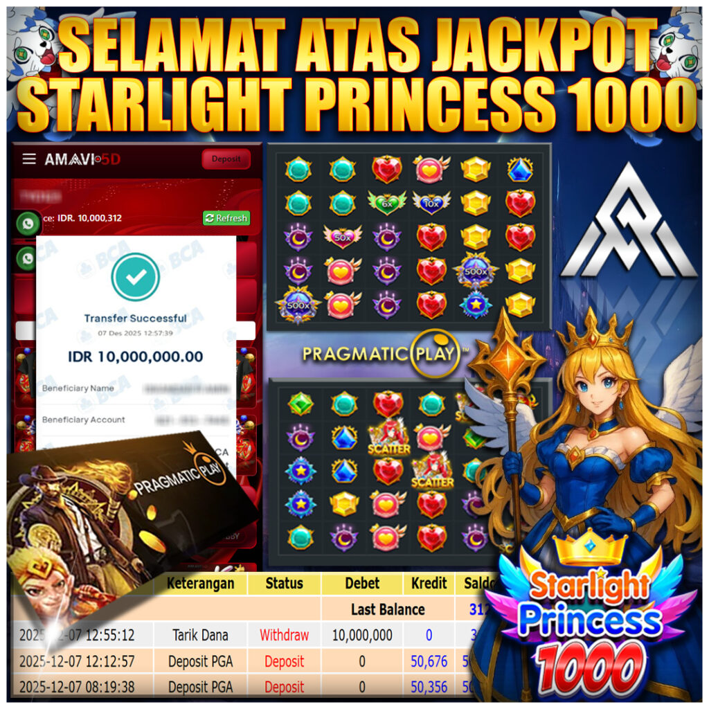 AMAVI5D JACKPOT SLOT STARLIGHT PRINCESS 1000 Rp 10.000.000- LUNAS, MINGGU,07 DESEMBER 2025 Selamat kepada User id :tum***11Telah berhasil mendapatkan kemenangan besar pada permainan