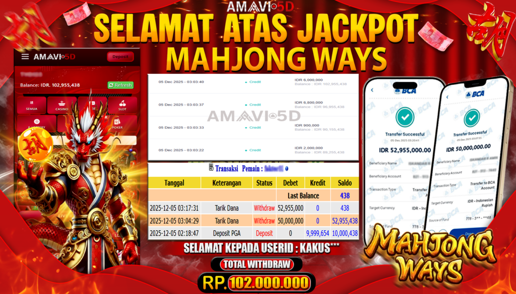 AMAVI5DJACKPOT SLOT WAHJONG WAYS Rp 102.000.000- LUNAS, JUMAT ,05 DESEMBER 2025 Selamat kepada User id :KAKUS*** Telah berhasil mendapatkan kemenangan besar pada permainan