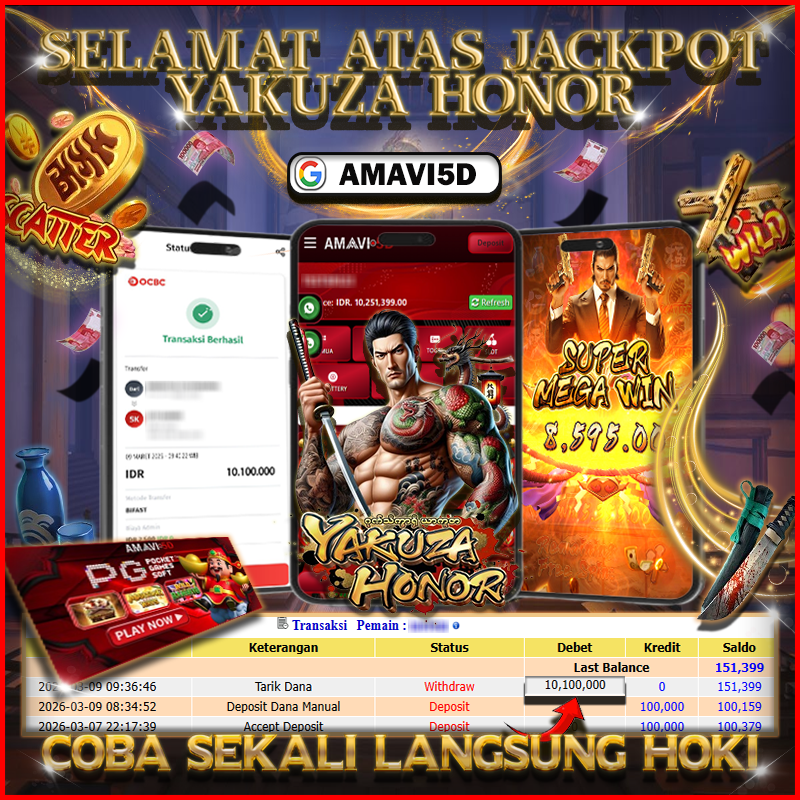 SLOT YAKUZA HONOR kemenangan Sebesar Rp10,100.000, Setelah mengisi formulir withdraw dengan kurung waktu hanya 5 – 10 menit pihak amavi5d sudah melakukan transfer kepada pemilik User id dan dana sudah dapat di cairkan oleh pemenang. Bukti pembayaran yang kami berikan merupakan bukti pembayaran yang SAH / VALID yang langung di dapatkan melaui tanda transfer transaksi dari Bank yang di tuju. Kami mengucapakan banyak Terima Kasih Kepada pemenang karena sudah mempercayakan kami sebagai Bandar Tepercaya yang membayar semua kemenangan member hingga lunas. Masih ragu dengan amavi5d bos ? Di mana bandar togel online sekarang yang terpercaya seperti amavi5d? Bandar yang mengirimkan kemenangan member tanpa bertele – tele. Jadi…. tidak perlu khwatir pada situs amavi5d karena kemenangan anda berapapun akan dibayarakan hingga lunas kepada pemenang