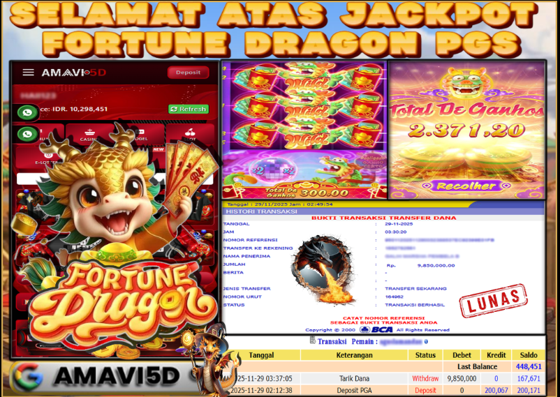 AMAVI5D JACKPOT SLOT FORTUNE DRAGON PGS Rp9.850.000- LUNAS