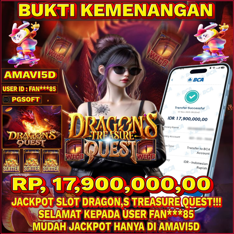 AMAVI5D JACKPOT SLOT DRAGONS TREASURE QUEST Rp 17.900.000,- LUNAS, RABU,12 NOVEMBER 2025 Selamat kepada User id :FAN***85 Telah berhasil mendapatkan kemenangan besar pada permainan