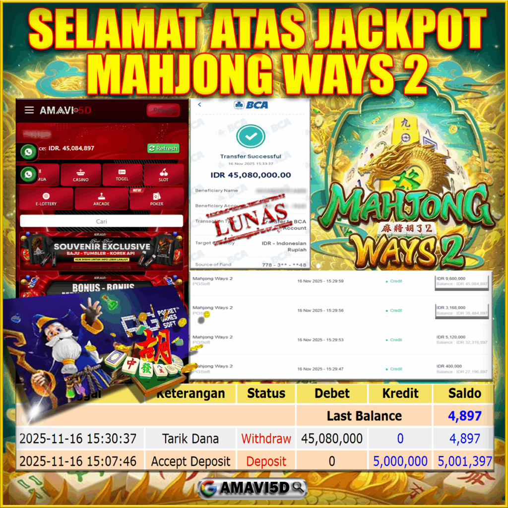 AMAVI5D JACKPOT SLOT MAHJONG WAYS 2 Rp45.080.000,- LUNAS