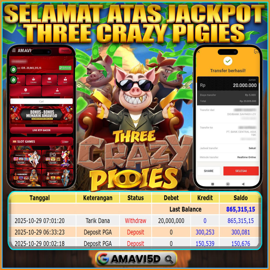 AMAVI5D JACKPOT SLOT THREE CRAZY PIGIES Rp20,000.000,- LUNAS