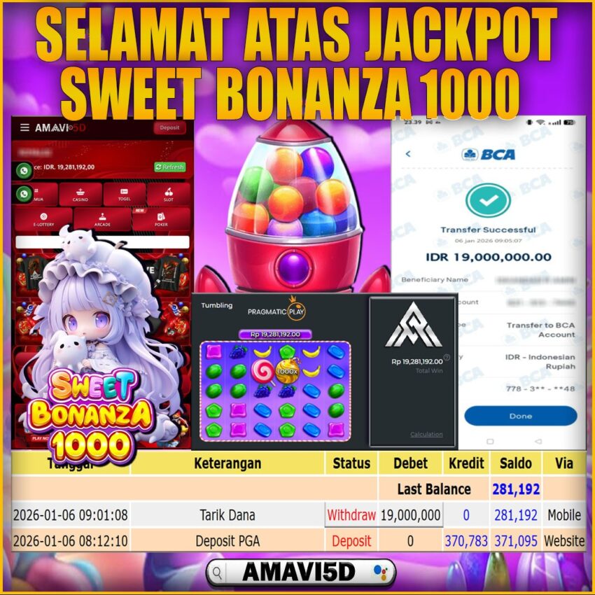 SLOT SWEET BONANZA 10000 kemenangan Sebesar Rp19,000.000, Setelah mengisi formulir withdraw dengan kurung waktu hanya 5 – 10 menit pihak amavi5d sudah melakukan transfer kepada pemilik User id dan dana sudah dapat di cairkan oleh pemenang. Bukti pembayaran yang kami berikan merupakan bukti pembayaran yang SAH / VALID yang langung di dapatkan melaui tanda transfer transaksi dari Bank yang di tuju. Kami mengucapakan banyak Terima Kasih Kepada pemenang karena sudah mempercayakan kami sebagai Bandar Tepercaya yang membayar semua kemenangan member hingga lunas. Masih ragu dengan amavi5d bos ? Di mana bandar togel online sekarang yang terpercaya seperti amavi5d? Bandar yang mengirimkan kemenangan member tanpa bertele – tele. Jadi…. tidak perlu khwatir pada situs amavi5d karena kemenangan anda berapapun akan dibayarakan hingga lunas kepada pemenang